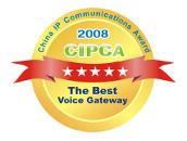 2008 China IP Communications Award – Best Voice Gateway: Dinstar Access Gateway series was awarded “The Best Voice Gateway” by China IP Communications